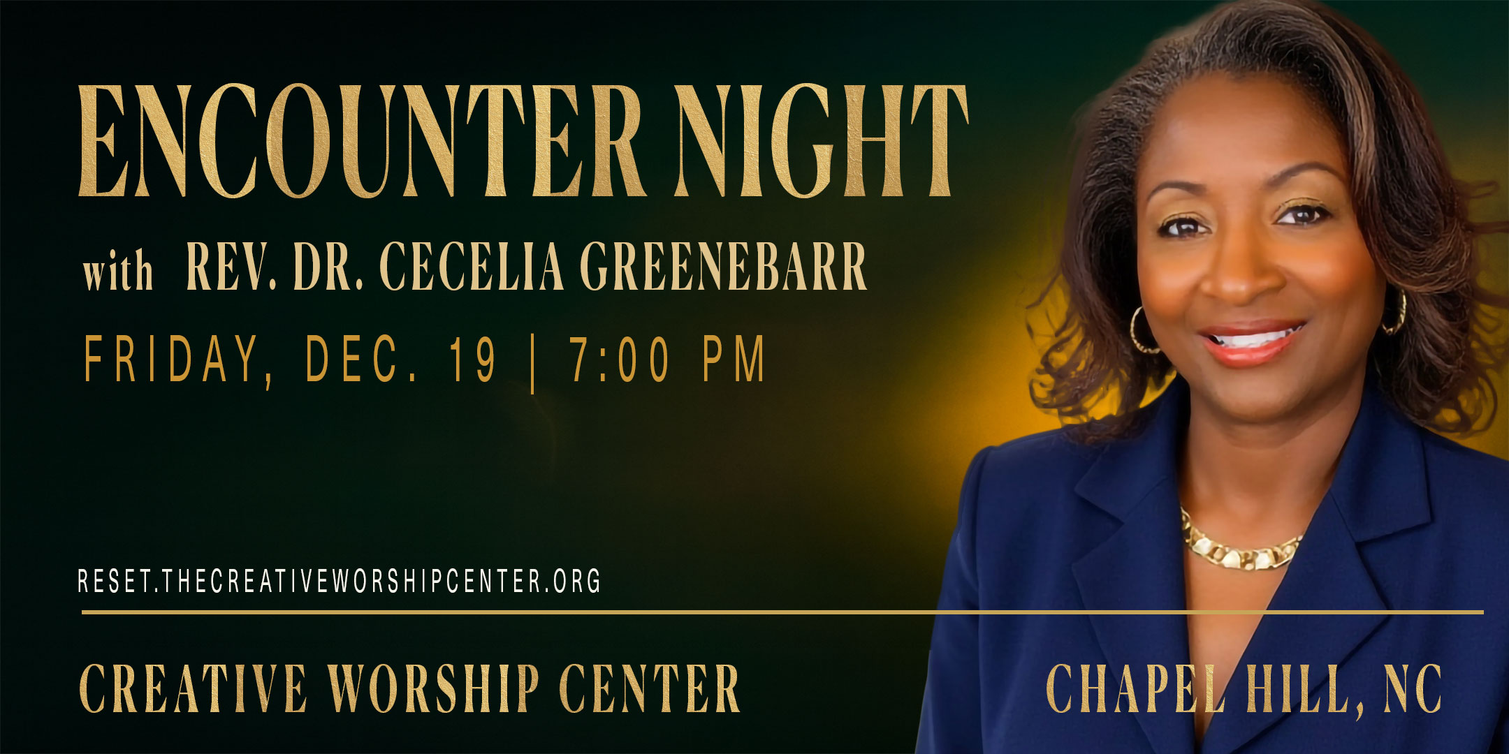 At Creative Worship Center in Chapel Hill, October is set apart as a month of Reset. It all culminates on December 19th at 7:00 PM with Encounter Night — a gathering to meet the Holy Spirit in power and clarity.